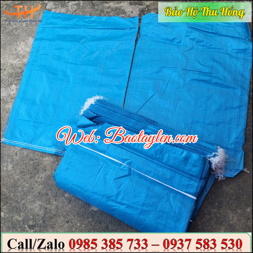 >>Bao tải màu xanh dương ép nhiệt may đáy 2 kim<<